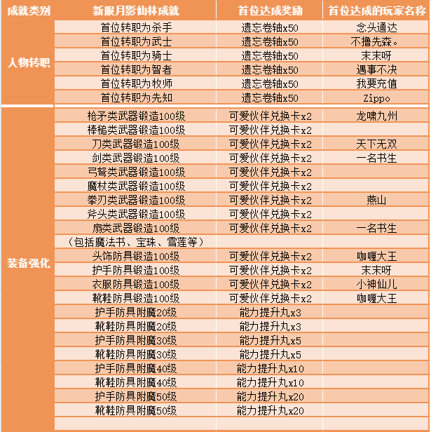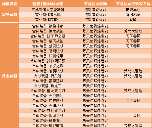 【活动内容】在活动有效期内,首位完成以下成就内容的玩家将会获得对应的成就奖励,完成任意5个成就可获得永久且绝版称号:【成就大师】(称号外观将于后续进行补充~)我们将会定期进行下列成就查询,每周更新首位达成的成就列表。