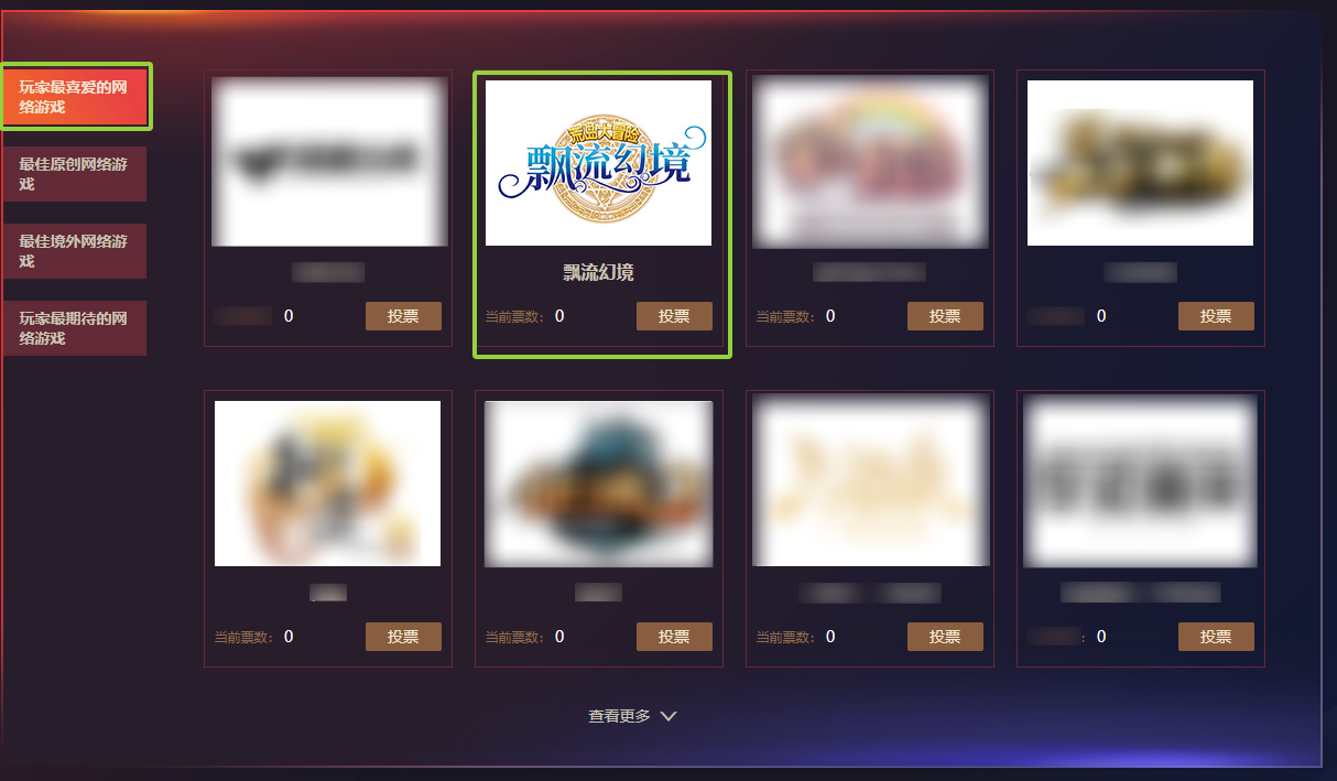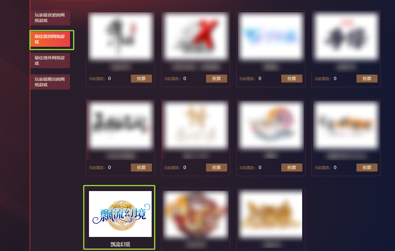 3. 在网络游戏页面中找到《飘流幻境》点击投票即可获得抽奖机会,每位用户每天可投5票。