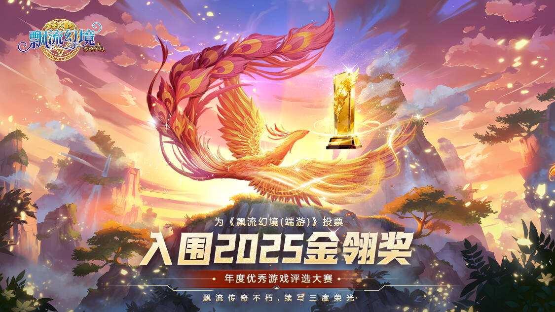 “由顺网科技旗下上海汉威信恒展览有限公司主办的2025年度优秀游戏评选大赛(金翎奖)如今已拉开序幕!作为“汇聚玩家所爱”的业界盛事,被誉为游戏界“奥斯卡”的金翎奖与广大玩家同行十九载,以其评选的权威性和公正性而受到中国游戏行业的广泛认同。”今年,《飘流幻境》将在本次评选中角逐【玩家最喜爱的网络游戏】和【最佳原创网络游戏】两个奖项!