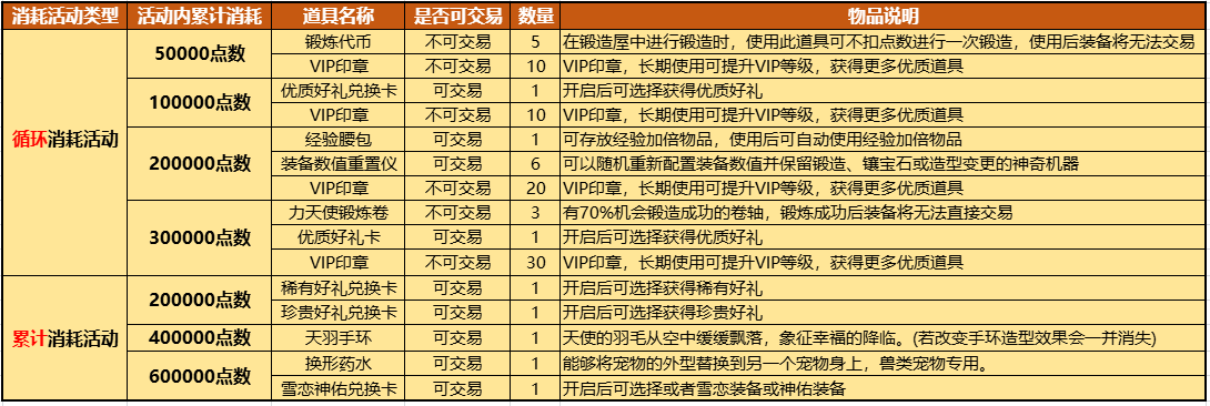 下图中,前四档50000/100000/200000/300000点数消耗奖励为循环消耗奖励,活动内消耗达到300000点数后,继续消耗50000点数,可循环获得第一档50000点数消耗奖励。
