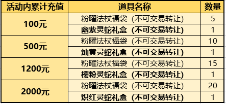 2.本活动各档位奖励叠加获得,当储值后,根据本期储值活动内累计金额即可获得该金额对应的档位及其之前档位的所有奖励。例如某游戏帐号当天充值2000元,则将获得1,2,3,4档位奖励;
