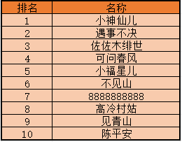 恭喜以上玩家在【月影仙林】第六期冲级活动中获得排名,除第一名外后续排名不分先后,活动奖励将在3-5个工作日内发放