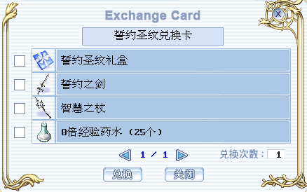誓约圣纹兑换卡、誓约圣纹礼盒 可交易转让