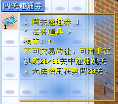 【更新内容】我们将会开启闯关28/30关的跳关功能,当玩家报名闯关28/30关后,可与闯关传送员进行对话,并消耗闯关速通卷*1跳过闯关活动前19关的战斗,使用后玩家将被传送至第20关,并获得闯关礼盒*1,闯关礼盒内含有第1-18关的所有奖励(第19关奖励将直接发至玩家背包内)