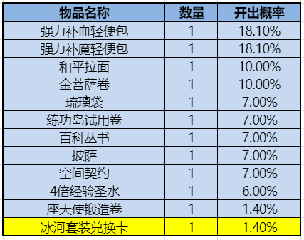 【冰河套装福袋】几率展示