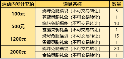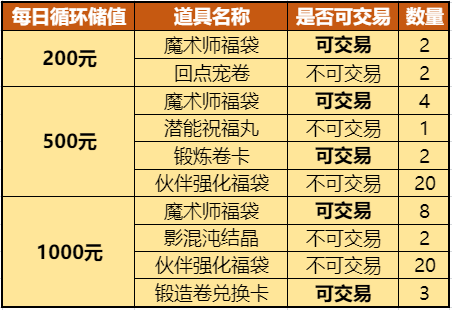 活动时间内累计储值达指定金额(不含月卡),即可获得对应的奖励!玩家所获得回馈内容,在储值达累计数量后直接派发!!(储值时为了奖励顺利到账,请保持账号为在线状态)