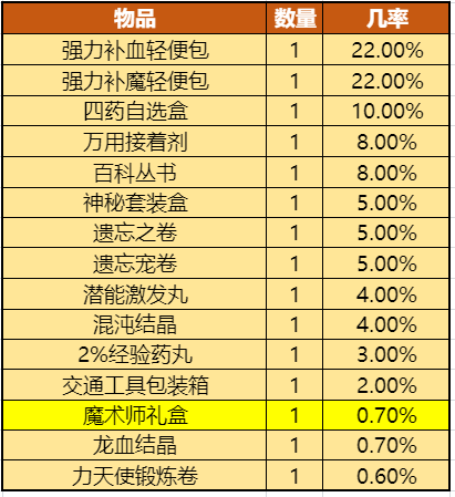 【魔术师福袋】几率展示