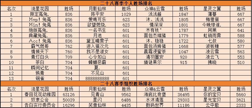 世界PK第二十九赛季排名公示